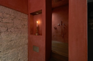 Die marmorähnliche fugenlose Oberfläche des Tadelakt ist abolut wasserfest und kann somit in Bädern, Duschen etc. eingesetzt werden.